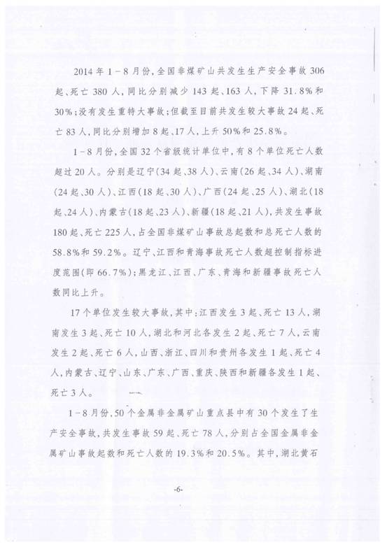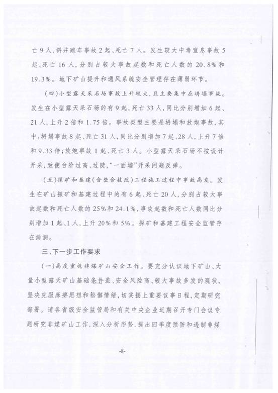 今年以來非煤礦山生產安全事故情況的通報
