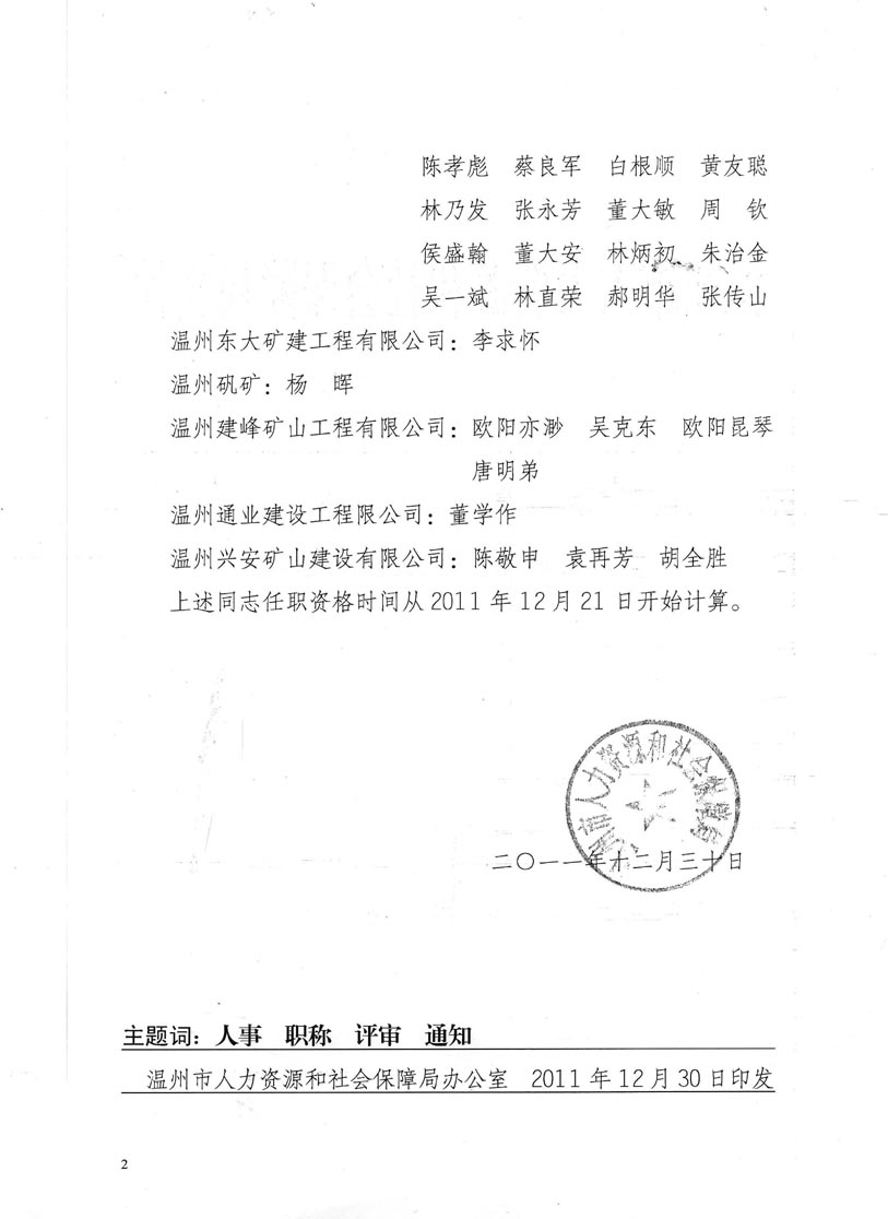 關于公布蔣志海等42位同志具有井巷工程專業工程師職務任職資格的通知